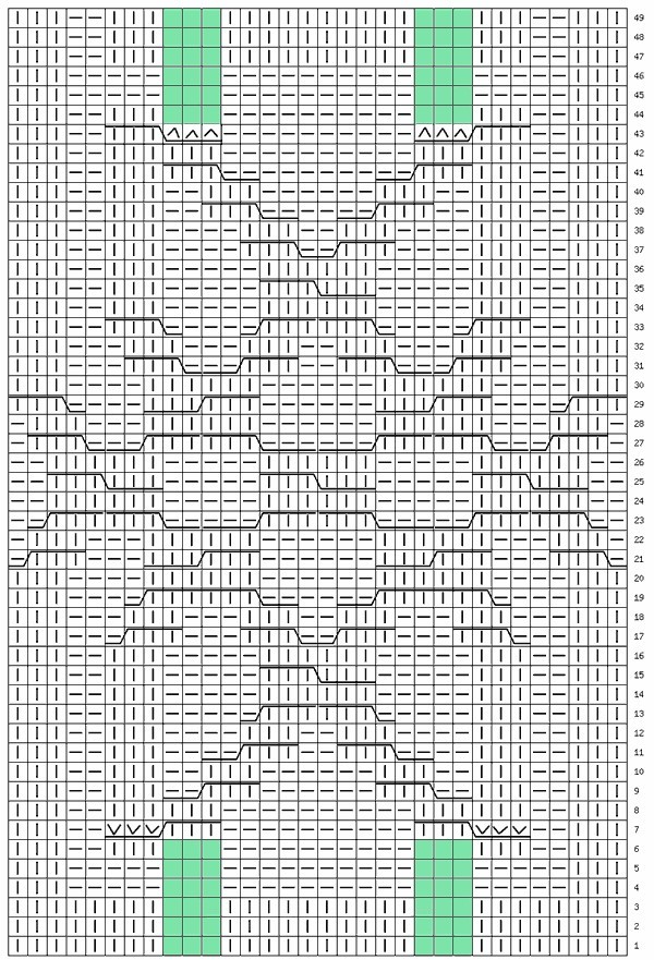 Ширина узора 26 петель . В высоту повторяем 1 раз с 1-го по 49 ряд.